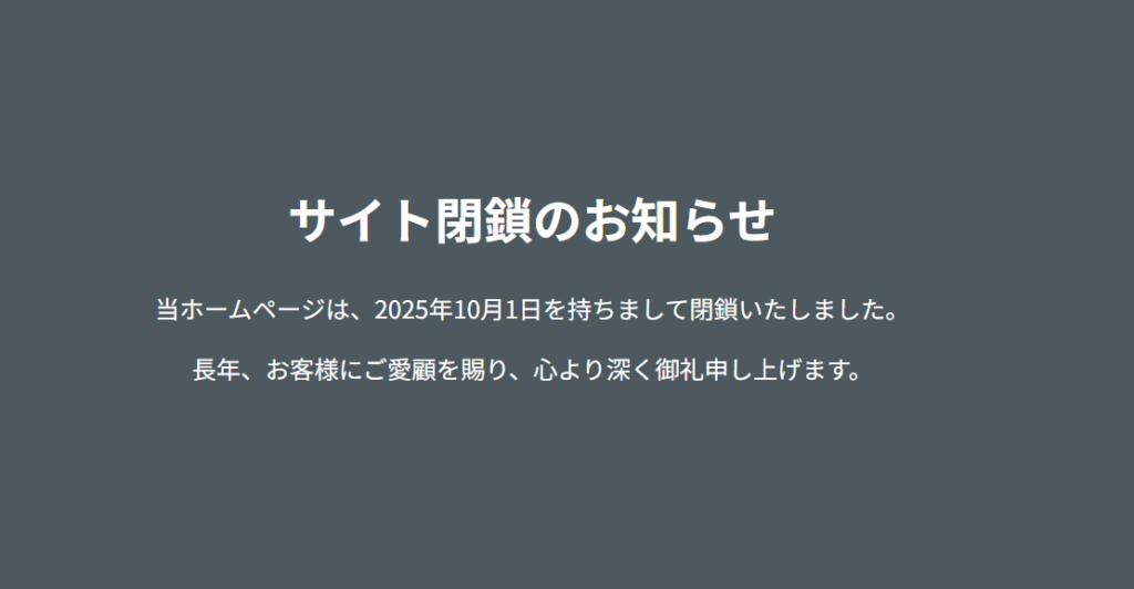 もし、このようなサイトの閉鎖でお困りの際は「お問い合わせ」よりご相談いただければご対応も可能ですのでメッセージをお送りください。